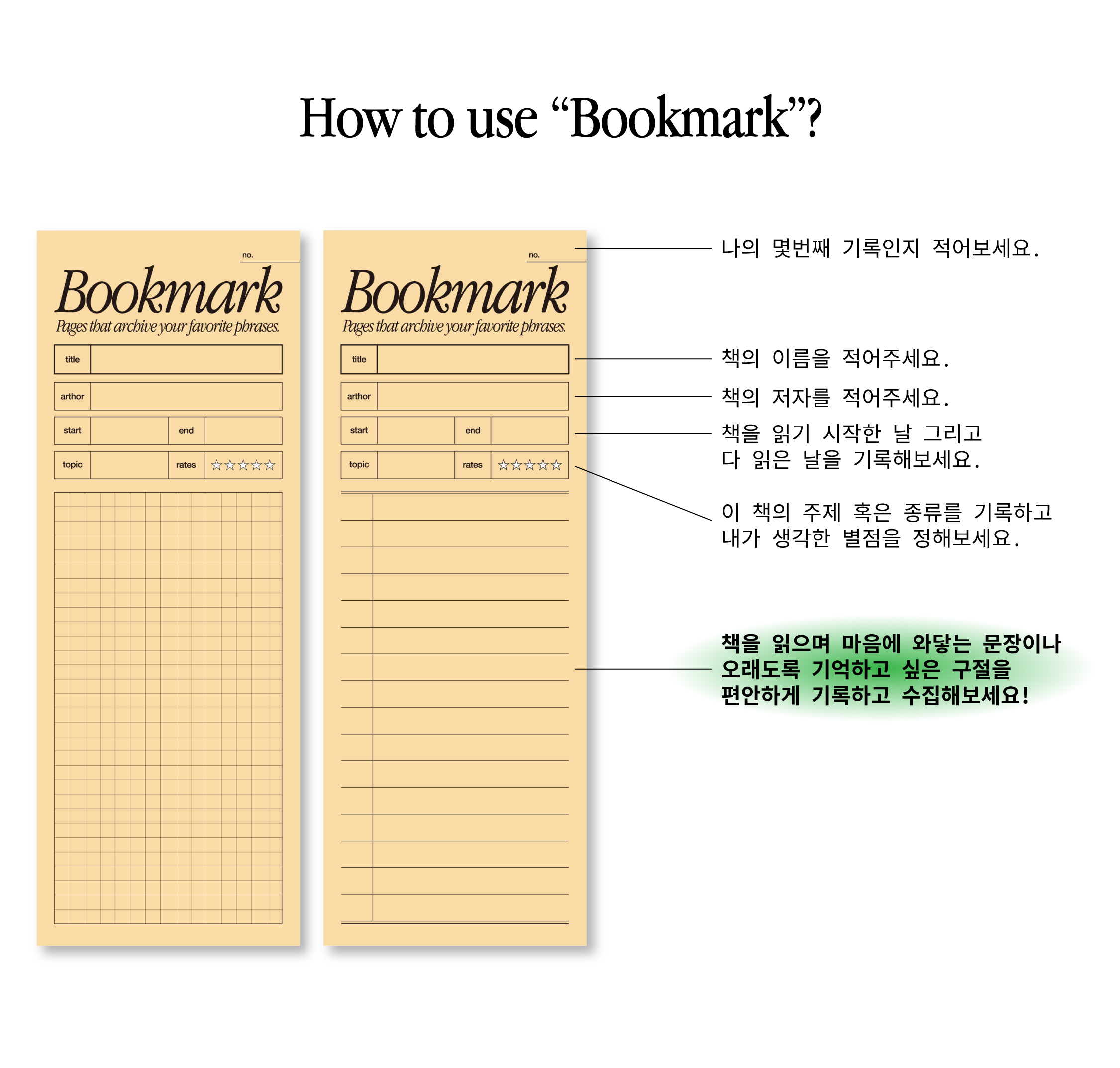 가장 마음에 와닿은 문장들을 채워 수집하고 보관할 수 있는 기록조각이 되기를 바랍니다.